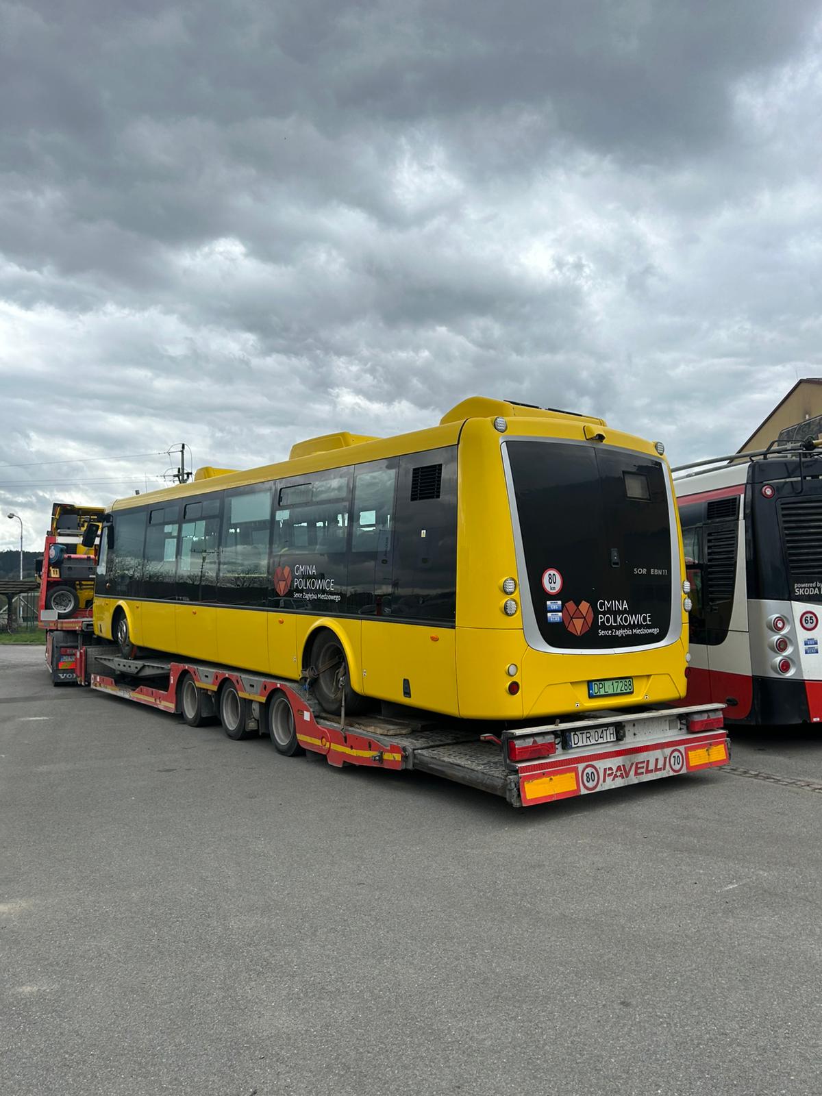 Transportujemy autobusy z niskim podwoziem! Niskopodwoziowe lawety z zawieszeniem hydraulicznym.